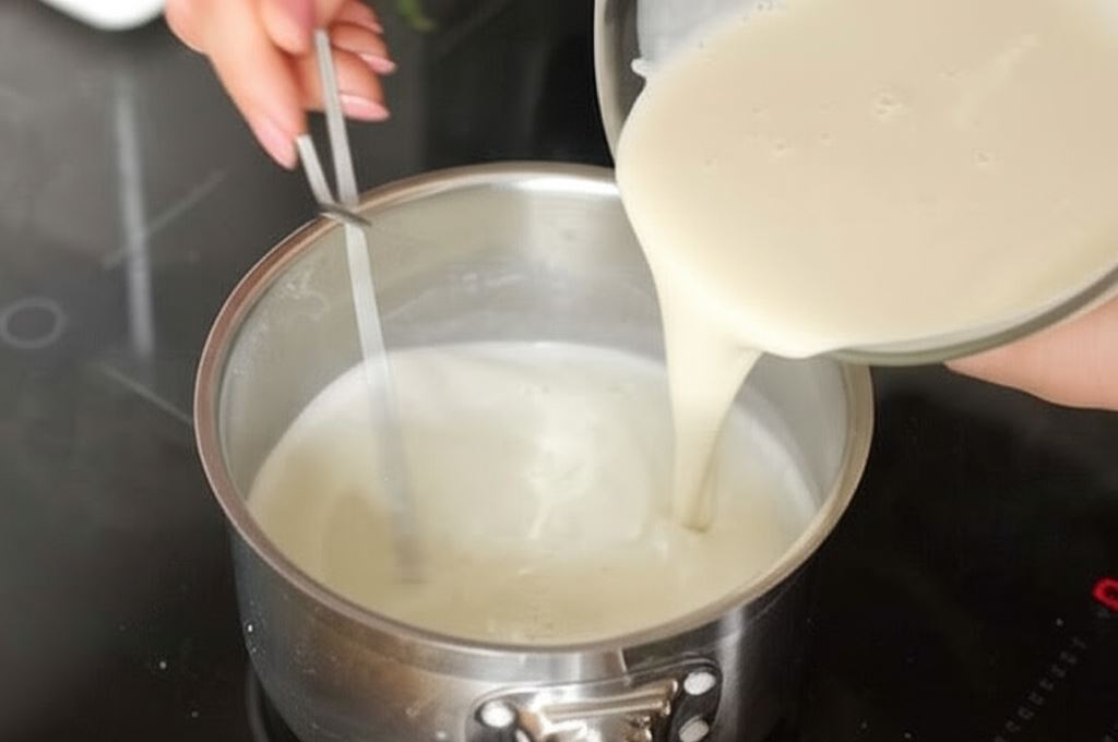 Ogrzej w garnuszku pierwszą część mleka z cukrem i ekstraktem waniliowym, w drugiej części mleka wymieszaj mąkę. Kiedy mleko z cukrem zacznie się gotować, dodaj mieszaninę z mąką i doprowadź budyń do wrzenia. Odstaw do ostygnięcia.
