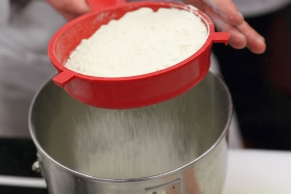 Przy użyciu sitka przesiej mąkę.