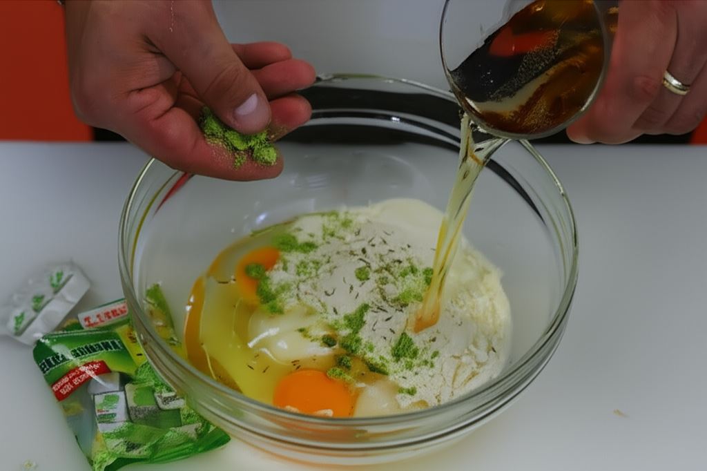 Do miski wbij jajka, potem wsyp mąkę, piwo, olej i kminek. Mieszaj aż do uzyskania ciasta o jednolitej konsystencji.