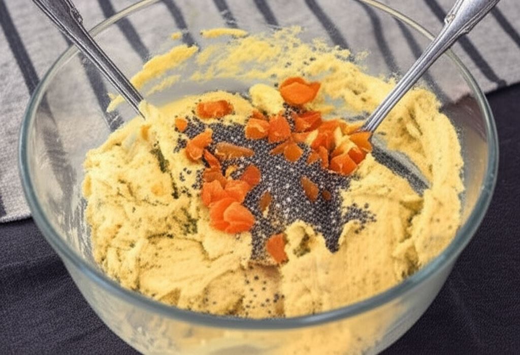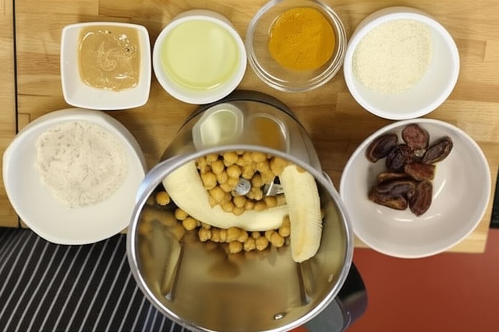 Sekret tego wypieku tkwi w harmonijnym połączeniu składników – namoczona i ugotowana ciecierzyca miesza się z bananami, masłem orzechowym i daktylami, tworząc pożywną i zaskakująco delikatną bazę. Morele i nasiona chia dodają tekstury, a kurkuma wprowadza subtelny aromat i piękny kolor.