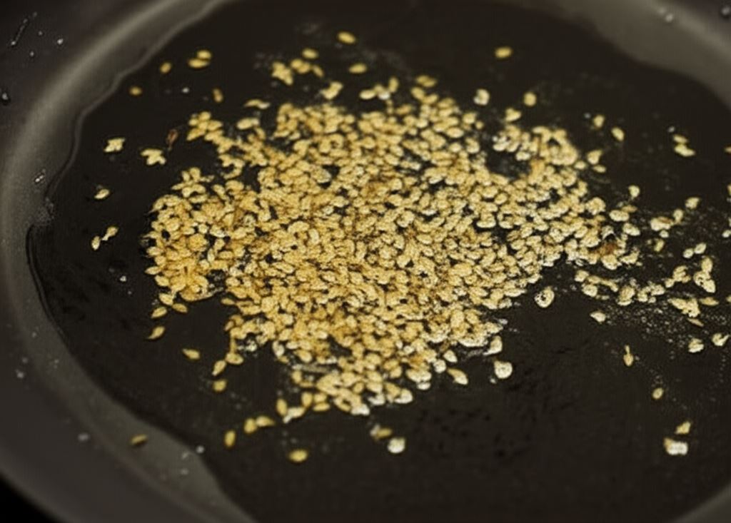 Umieść nasiona kuminu na rozgrzanym oleju i smaż, dopóki nie uzyskają rumianego koloru.