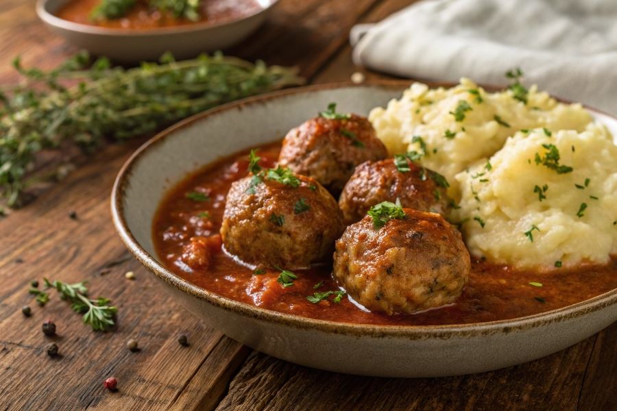 Pulpety w sosie koperkowym to klasyka polskiej kuchni. Delikatne kulki mięsne w aksamitnym sosie śmietanowym z obfitością świeżego koperku stanowią idealne połączenie z puree ziemniaczanym. To danie, które przywołuje wspomnienia domowych obiadów u babci, jednocześnie będąc propozycją na nowoczesny, szybki posiłek.