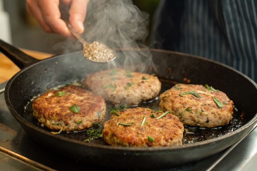 - Smaż przez 4-5 minut z każdej strony (dla kotletów o standardowej grubości)