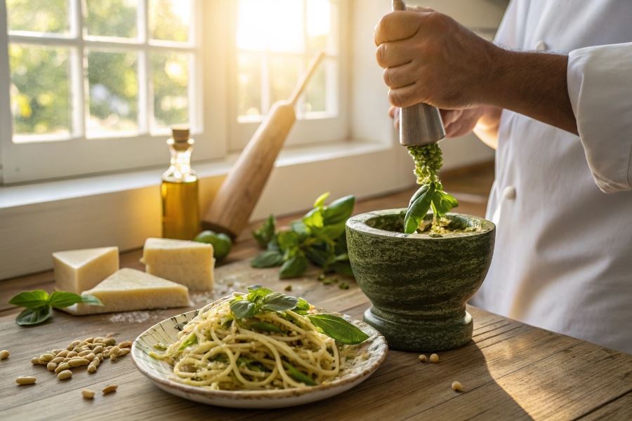 Praktyczna wskazówka: makaron do pesto należy gotować al dente minus 1 minuta, a następnie dokończyć gotowanie w patelni z sosem, co zapewni perfekcyjne połączenie składników i pełniejszy smak.