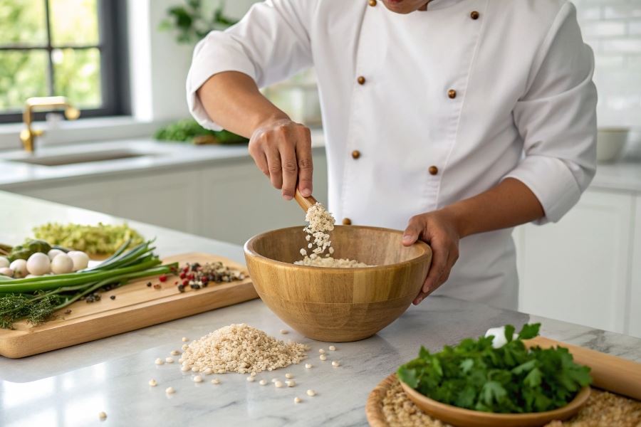 - Metoda tradycyjna: Doprowadź wodę do wrzenia, dodaj kaszę, zmniejsz ogień i gotuj pod przykryciem przez 35-40 minut, aż ziarna będą miękkie, ale zachowają lekką sprężystość.