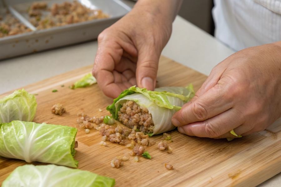 Profesjonalny trik: dodanie łyżki mąki ziemniaczanej do masy znacząco poprawia spójność leniwych gołąbków bez wpływu na smak.
