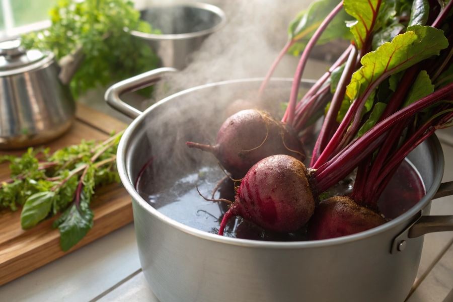 Wskazówka eksperta: Dodanie łyżki octu do wody podczas gotowania buraków w całości pomaga zachować ich intensywny kolor i przyspiesza proces gotowania.