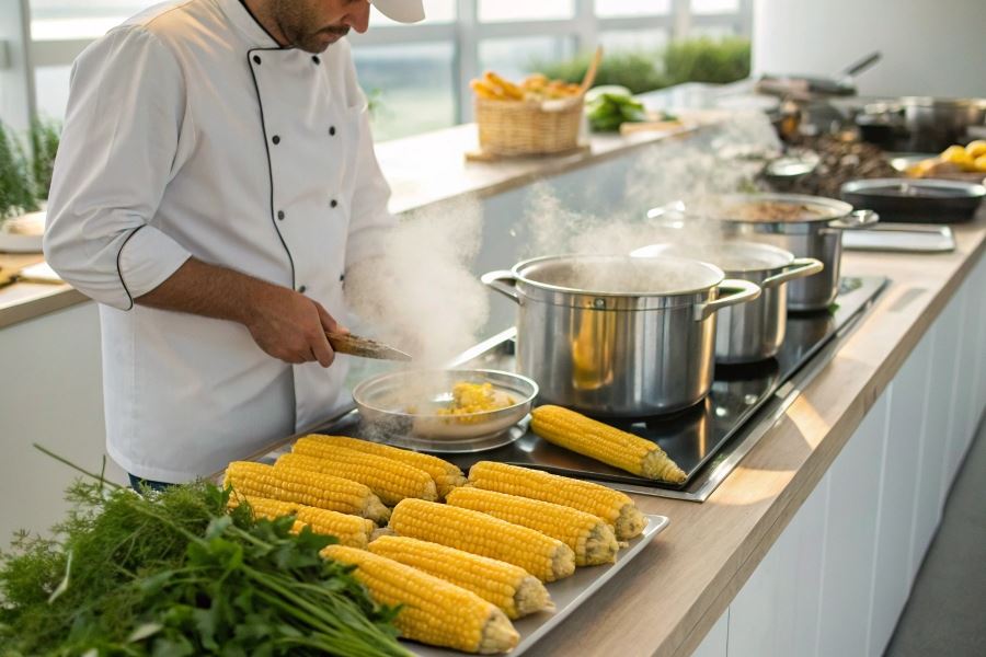 Gotowanie na parze to zdrowsza alternatywa, pozwalająca zachować więcej składników odżywczych. Wystarczy umieścić oczyszczone kolby w specjalnym naczyniu do gotowania na parze nad garnkiem z wrzącą wodą i gotować pod przykryciem przez około 15-20 minut. Ta metoda sprawia, że kukurydza zachowuje intensywniejszy smak i więcej witamin.