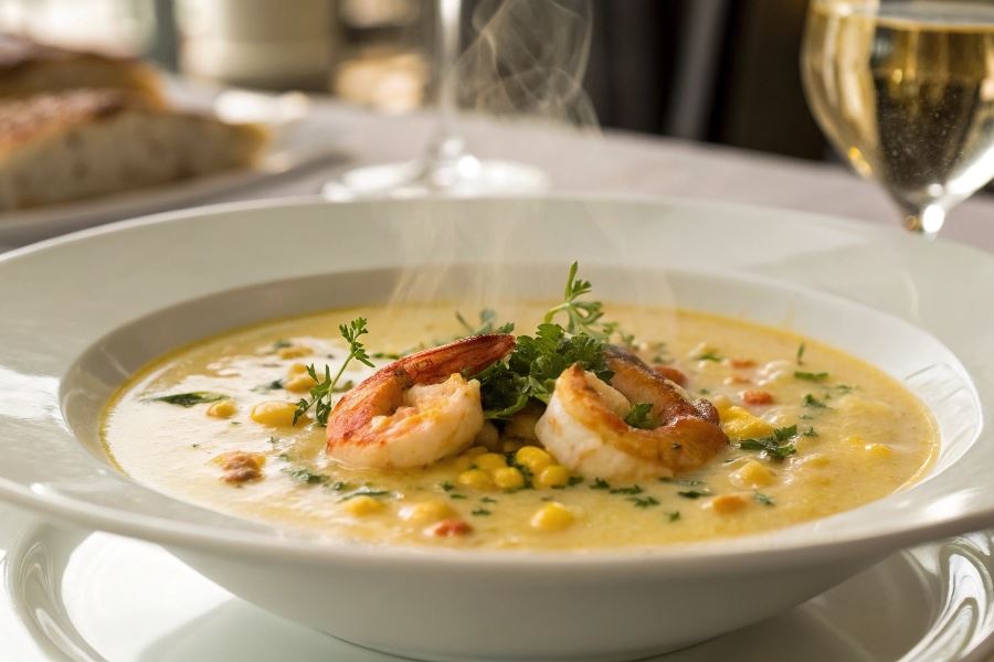Sekret doskonałej zupy krem kukurydzianej tkwi w odpowiednim balansie między słodkością kukurydzy a delikatnością krewetek, które nie powinny dominować, lecz uzupełniać smak.