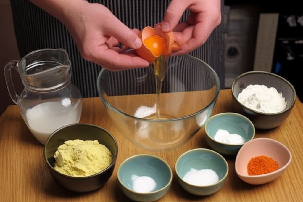 W naczyniu zmieszaj mąkę pszenną, mąkę kukurydzianą, jajko, cukier, proszek do pieczenia, mleko, przyprawę do skrzydełek z kurczaka Knorr oraz odrobinę soli. Wszystko starannie wymieszaj, aby uzyskać jednolitą, gęstą mieszankę.