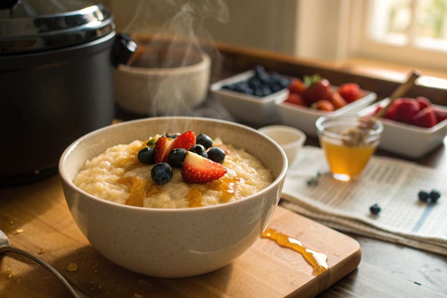 Kaszka kukurydziana przygotowana w multicookerze zyskuje wyjątkową kremowość i jednolitą konsystencję. Słodka wersja z owocami i miodem to doskonały pomysł na pożywne śniadanie lub kolację. Wystarczy ustawić program „Kasza” lub „Owsianka” i dodać do kaszki świeże owoce sezonowe – maliny, borówki czy pokrojone brzoskwinie. Miód doda naturalnej słodyczy, a cynamon wzbogaci aromat. Multicooker utrzymuje idealną temperaturę, dzięki czemu kaszka nie przypala się i zachowuje wszystkie wartości odżywcze.