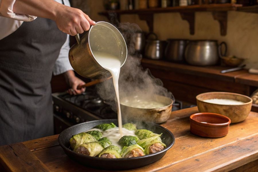 Przygotowanie tradycyjnego sosu śmietanowego do leniwych gołąbków wymaga kilku prostych składników i technik:
