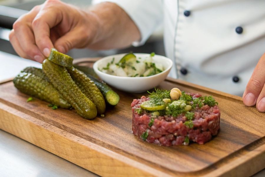 „Wyrazisty smak ogórków konserwowych doskonale równoważy intensywność surowej wołowiny, tworząc harmonijne połączenie, które jest charakterystyczne dla zachodniopolskiej tradycji kulinarnej” – jak wskazują badania Instytutu Kulinarnego w Poznaniu.