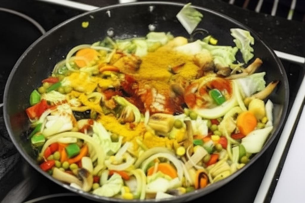 Wlej pół szklanki wody, kostkę Knorr oraz curry i chili. Gotuj na małym ogniu, aż warzywa będą miękkie.