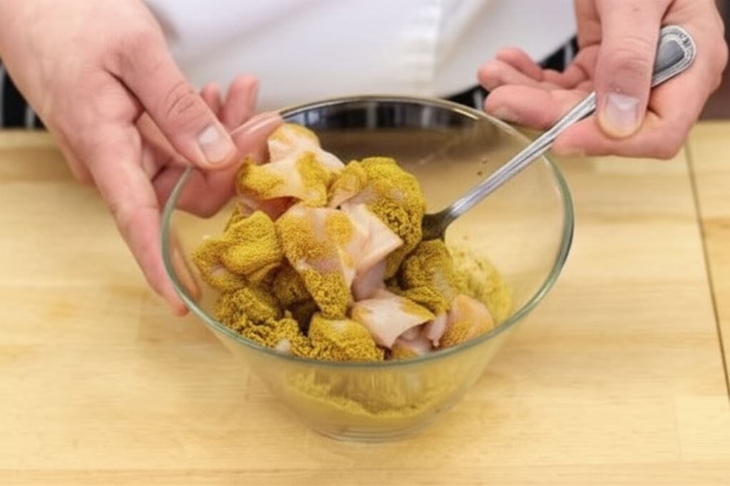 Kurczaka wymieszaj dokładnie z curry.