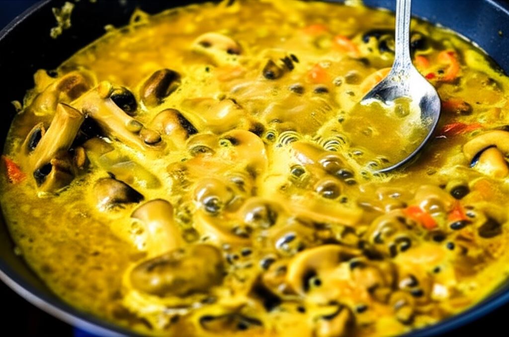 Eksperymentuj z dodatkami! Możesz wzbogacić curry o świeży szpinak, dodany na ostatnie 2 minuty duszenia, lub kostki batata dodane razem z pieczarkami. Dla miłośników bardziej kremowej konsystencji, dodaj łyżkę mleka kokosowego przed końcem gotowania. Pamiętaj, że intensywność chilli możesz regulować według własnych preferencji.