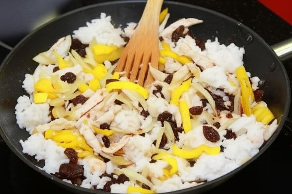 Cynamonowy kurczak to fascynująca podróż kulinarna do słonecznego Maroka. Delikatne kawałki kurczaka, aromatyczny cynamon i słodkie rodzynki tworzą harmonijną kompozycję smaków, która przeniesie Cię wprost na tętniące życiem marokańskie targowisko. Soczyste mięso otulone orientalnymi przyprawami, podane z puszystym ryżem, to prawdziwa uczta dla podniebienia.