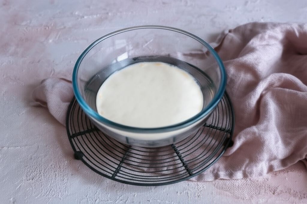 Sporządź rozczyn. Do drożdży wsyp połowę ciepłego mleka (125 mililitrów) i 2 łyżki cukru. Zamieszaj. Wsyp 1 łyżkę mąki i połącz składniki. Nakryj ściereczką i odstaw na około 25 minut.