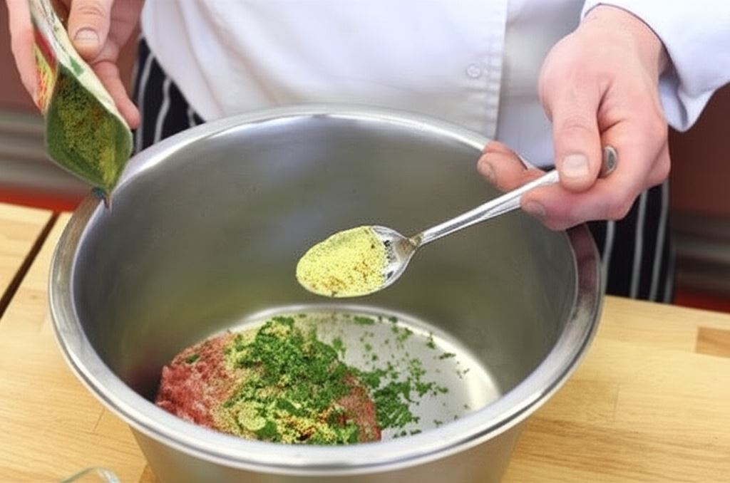 Mięso mielone połącz z Delikatem Knorr i drobno posiekaną natką pietruszki.