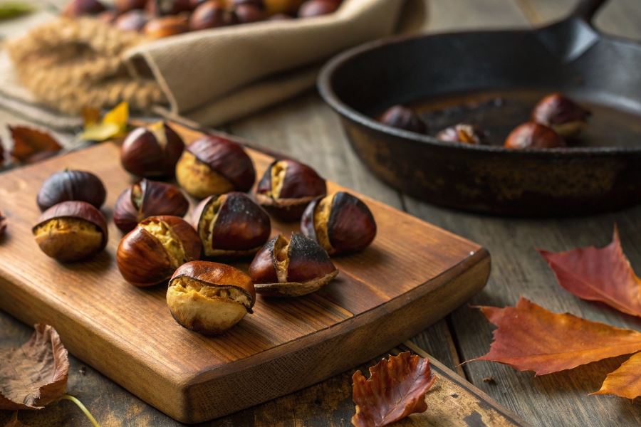 Miłośnicy aktywności na świeżym powietrzu docenią pieczenie kasztanów na grillu lub ognisku. Nacięte kasztany układamy na ruszcie lub w specjalnej patelni z otworami i pieczemy przez 10-15 minut, regularnie obracając. Ta metoda nadaje kasztanom wyjątkowy, dymny aromat, który doskonale komponuje się z ich naturalną słodyczą.