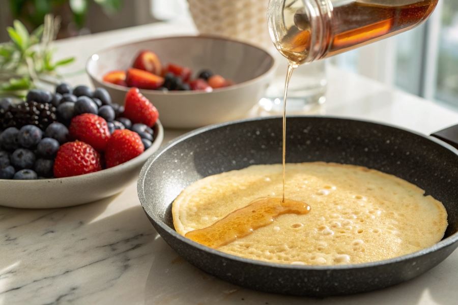 Doskonałym dopełnieniem naleśników są sosy i polewy. Do słodkich wersji pasują syrop klonowy, wegański sos czekoladowy czy mus z owoców leśnych. Wytrawne naleśniki zyskają na smaku z sosem z suszonych pomidorów, pesto bazyliowym lub kremowym sosem z nerkowców.