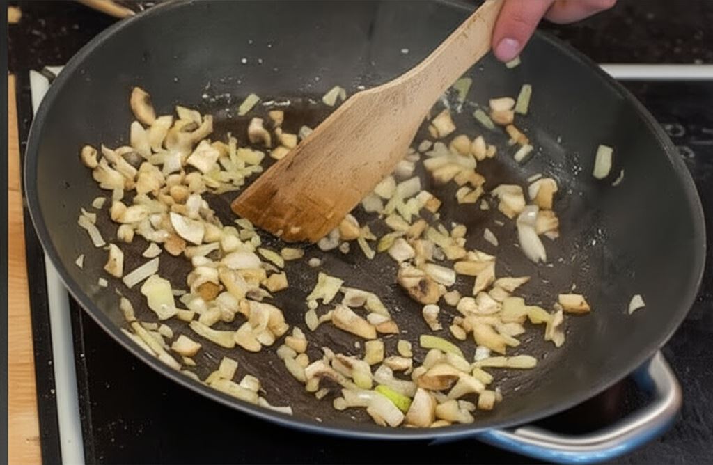 Zrumień warzywa na patelni i dołóż polędwiczki. Przenieś całość do naczynia żaroodpornego.