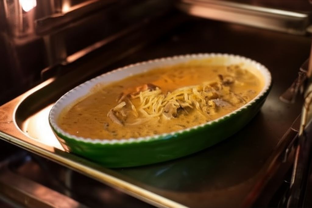 Piecz pod przykryciem przez 25 minut w temperaturze 200 °C. Na 10 minut przed końcem pieczenia zdejmij pokrywkę, aby zapiec ser.