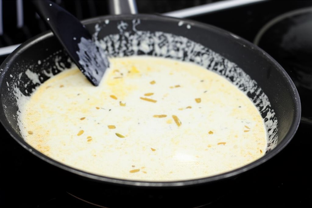 Na patelni pozostałej po smażeniu mięsa zrumień pokrojoną w kostkę cebulę. Wszystko zalej winem, gotuj do całkowitego odparowania, dodaj śmietanę, wsyp Sos do pieczeni jasny Knorr i starannie wymieszaj. Sos gotuj 2-3 minuty aż zgęstnieje. Eskalopki serwuj z makaronem podsmażonym na oliwie, obficie polanym przygotowanym sosem.