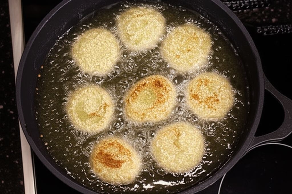 Z ciasta utwórz niewielkie kulki, które potem spłaszcz i obtocz w sezamie. Smaż w sporej ilości tłuszczu w średniej temperaturze aż uzyskają złoty kolor po obu stronach. Po usmażeniu odłóż kotleciki na papierowy ręcznik, by odsączyć nadmiar tłuszczu. Jeśli trzeba, falafele dopieczesz w rozgrzanym piekarniku.