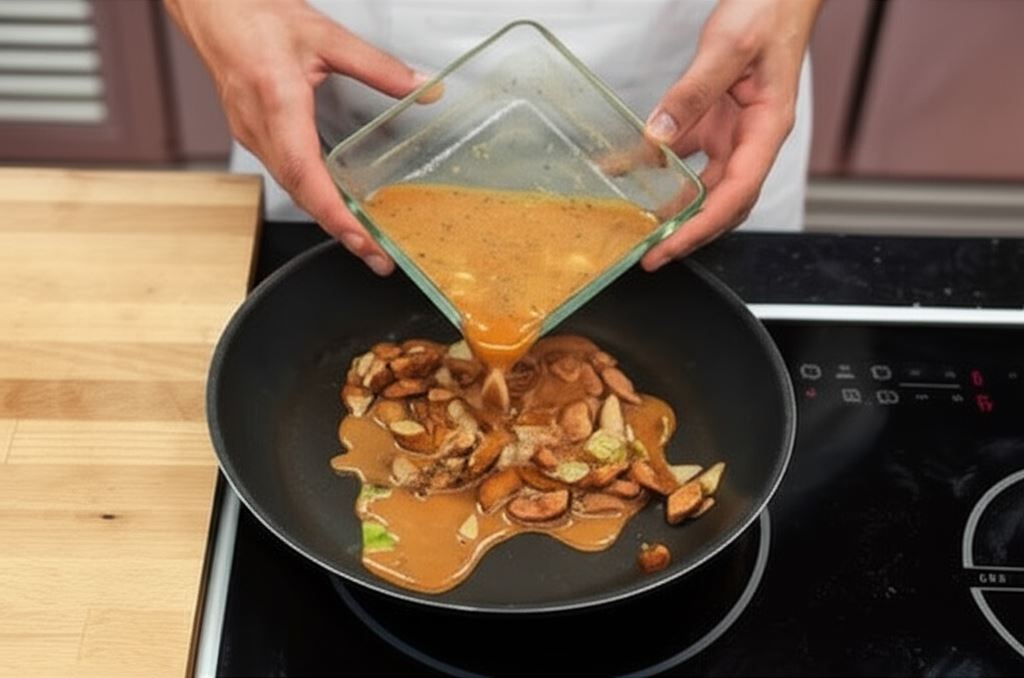 Wsyp odcedzoną fasolkę. Gotuj wszystko przez ok. 5 minut, dopóki sos nie zgęstnieje. Jeżeli przepadasz za majerankiem, przypraw nim danie według gustu.