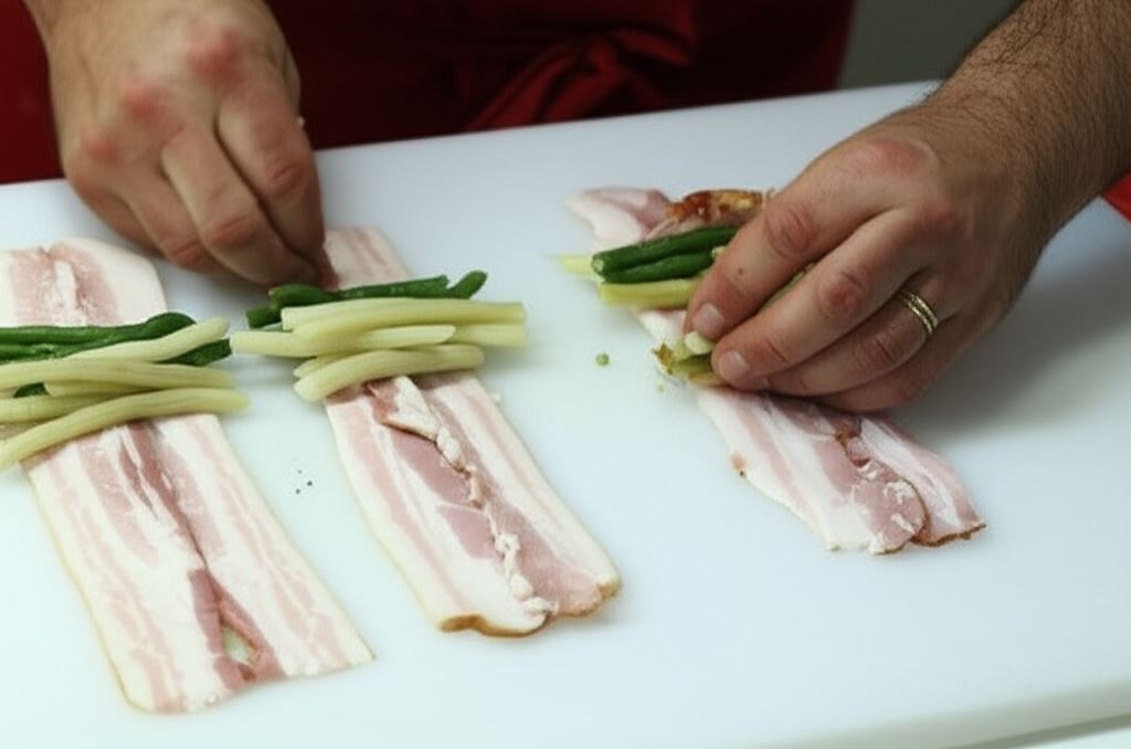 Możesz użyć mrożonej fasolki szparagowej, co znacznie skróci czas przygotowania. Pamiętaj jednak, by nie rozgotować strączków – powinny pozostać lekko chrupiące, aby zachować swój charakter i formę po zawinięciu w boczek.