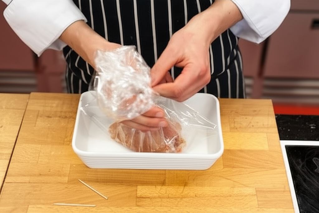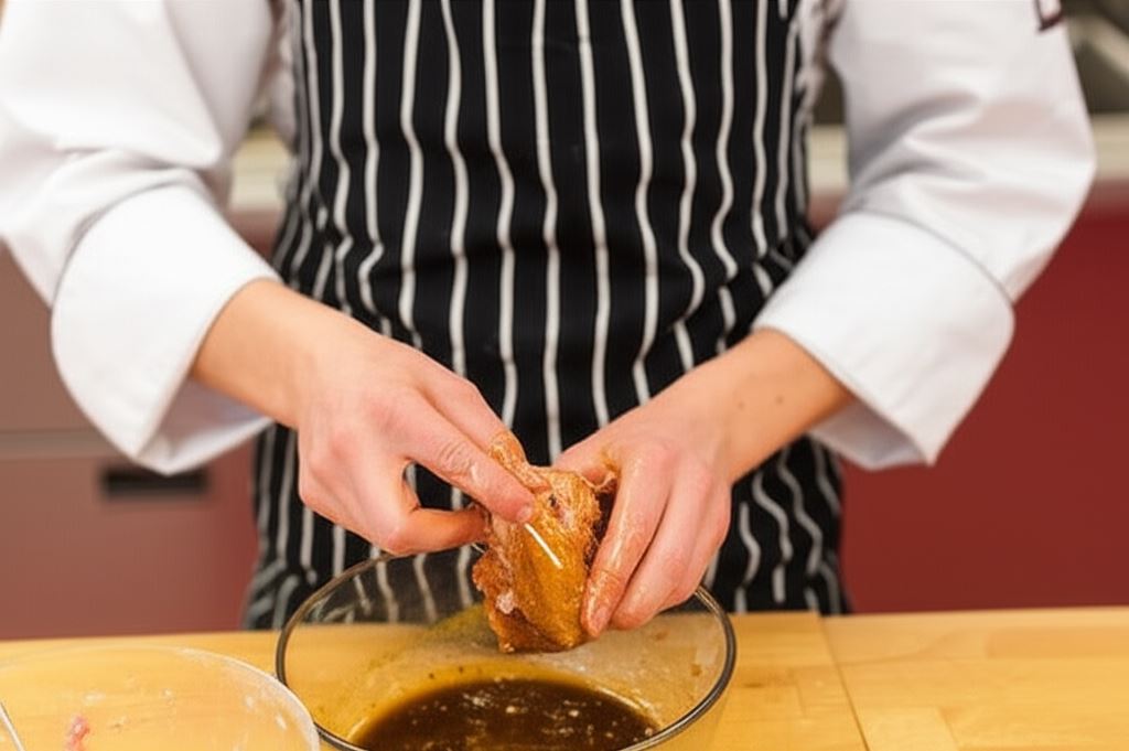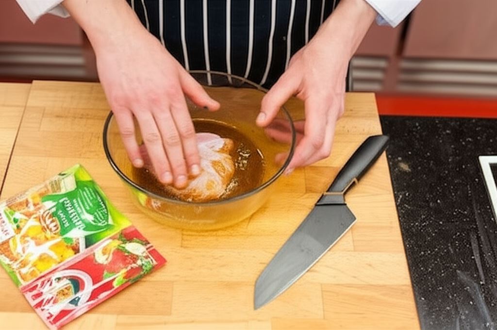 Wysuszoną pierś natnij wzdłużnie tak, by utworzyć kieszonkę, po czym natrzyj mięso sporządzoną marynatą.