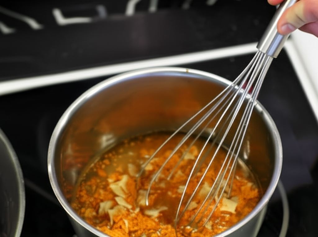 Sporządź zupę gulaszową Knorr zgodnie z instrukcją na opakowaniu. Gotuj do uzyskania gęstego sosu. Upieczone papryki serwuj z sosem.