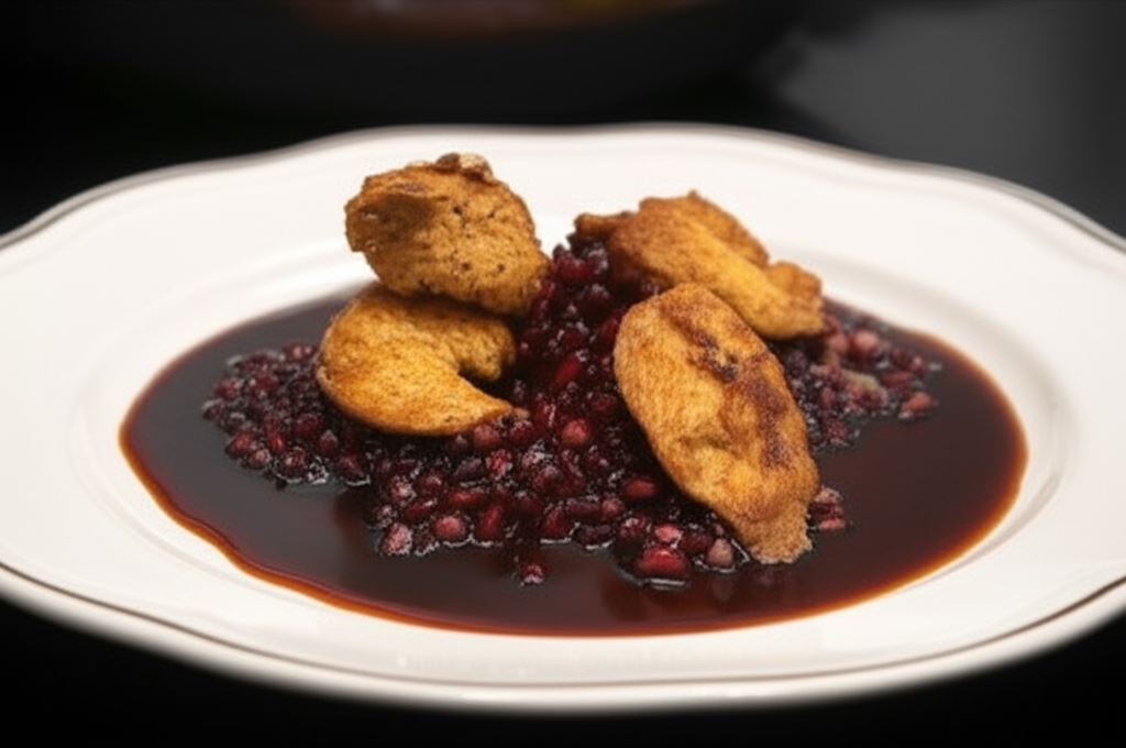Granat to owoc o bogatej historii kulinarnej, ceniony w kuchniach Bliskiego Wschodu od tysięcy lat. Jego rubinowe pestki nie tylko nadają potrawie piękny kolor, ale są również źródłem antyoksydantów. W połączeniu z octem balsamicznym tworzą sos o głębokim, wyrazistym smaku, który doskonale równoważy delikatność kurczaka.