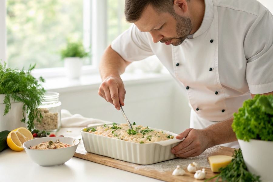 Sekret doskonałego pasztetu rybnego tkwi w odpowiednim stopniu rozdrobnienia składników. Ryba powinna być zmielona dwukrotnie – pierwszy raz z grubszym sitkiem, drugi raz z drobniejszym, co zapewni jedwabistą konsystencję bez grudek.