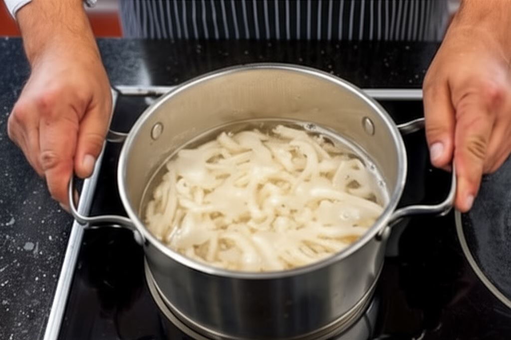 Flaki ugotuj wstępnie dwa - trzy razy, za każdym razem przepłukując je pod zimną bieżącą wodą.