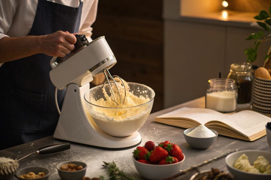 - Kremy nabierają puszystości i lekkości dzięki dokładnemu napowietrzeniu. Mikser zapewnia jednolitą konsystencję bez grudek.