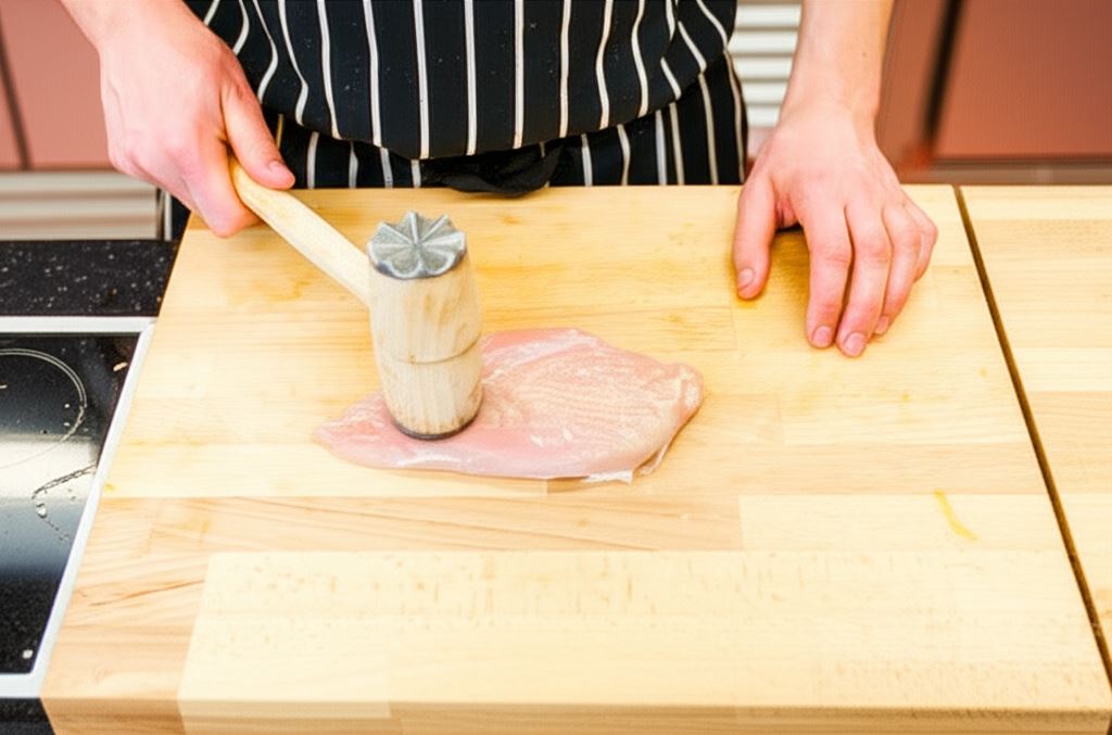 Mięso oczyść z błonek i delikatnie rozbij tłuczkiem, by miało grubość nie większą niż 2 cm.