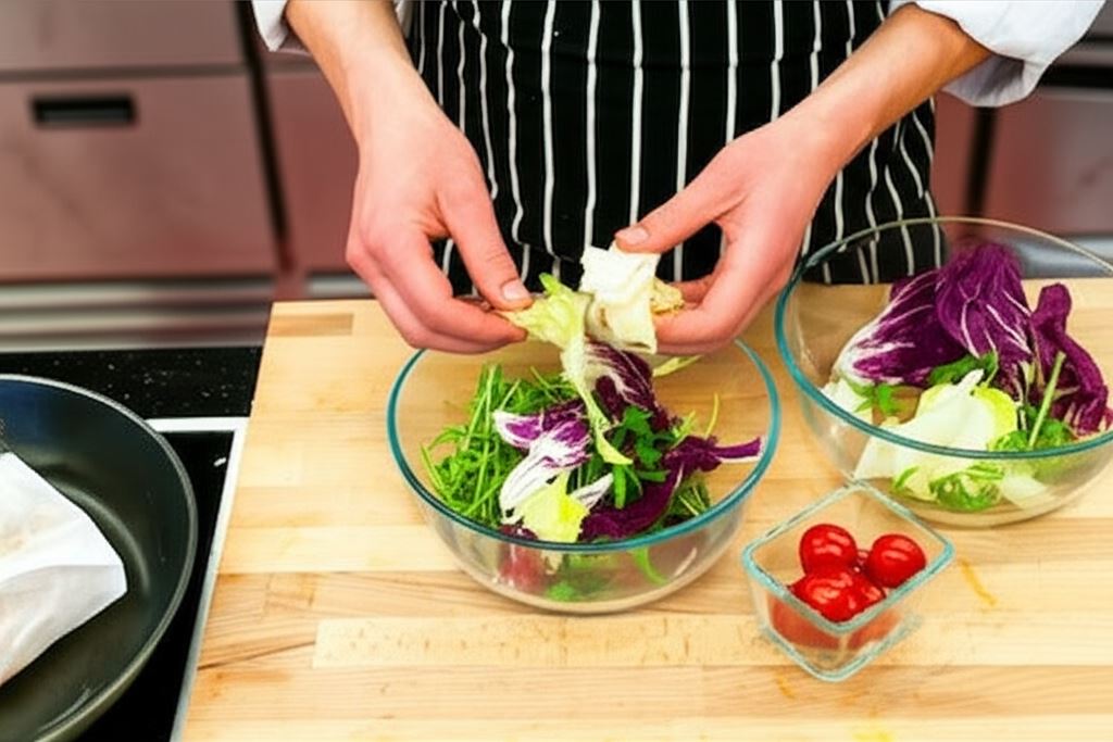 Możesz wzbogacić sałatkę o orzechy włoskie, kawałki sera pleśniowego lub świeże zioła, takie jak bazylia czy estragon. Dla bardziej wyrazistego smaku dodaj kapary lub oliwki. Jeśli lubisz ostrzejsze akcenty, wzbogać dressing o szczyptę pieprzu cayenne lub kilka kropel sosu tabasco.