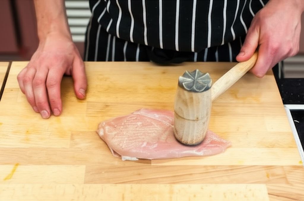 Mięso oczyść z błonek i delikatnie rozbij tłuczkiem, by miało grubość nieprzekraczającą 2 cm.