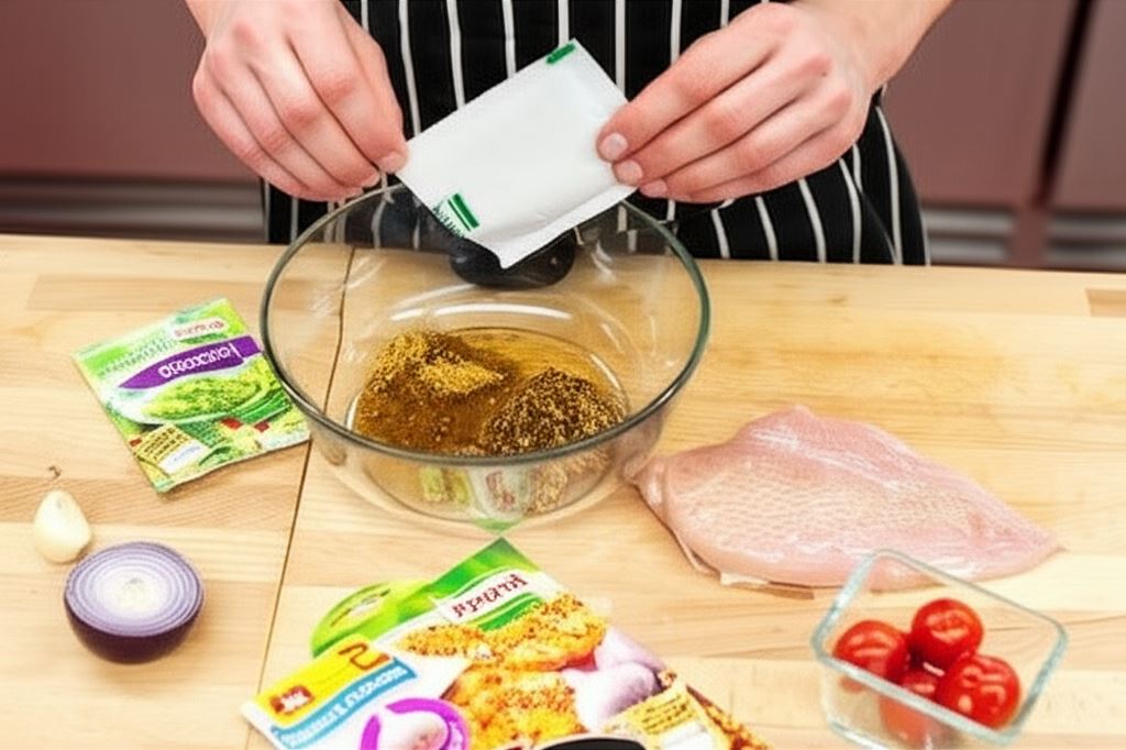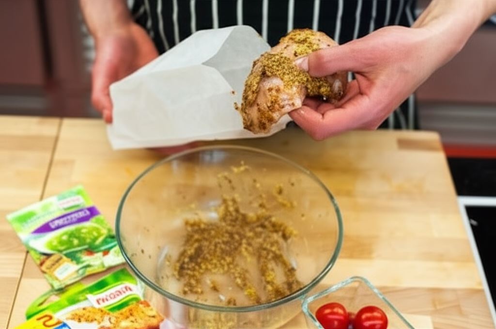 Przyprawę z opakowania Fix Knorr połącz z olejem, musztardą, wodą i natrzyj tym mięso. Następnie umieść mięso razem z marynatą do torebek załączonych do opakowania Fix Knorr.