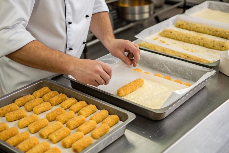 Wskazówka eksperta: Nigdy nie rozmrażaj krokietów w ciepłej wodzie ani w kuchence mikrofalowej przed smażeniem – spowoduje to rozwarstwienie panierki i nierównomierne podgrzanie nadzienia.