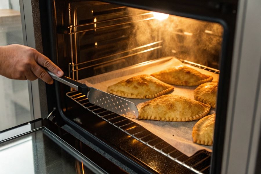 - Kontrola wypieczenia: Idealnie upieczone czebureki mają złocistobrązowy kolor i chrupiącą teksturę