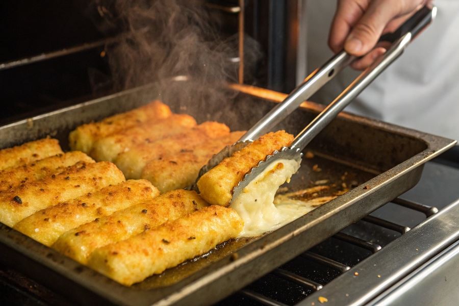 Smażenie na patelni to technika dla miłośników ekstremalnie chrupiącej panierki. Wymaga rozgrzania oleju (najlepiej rzepakowego lub słonecznikowego) na średnim ogniu i smażenia paluszków przez 2-3 minuty z każdej strony. Kluczowe jest niezbyt intensywne nagrzewanie, by ser zdążył się rozpuścić przed przypaleniem panierki.