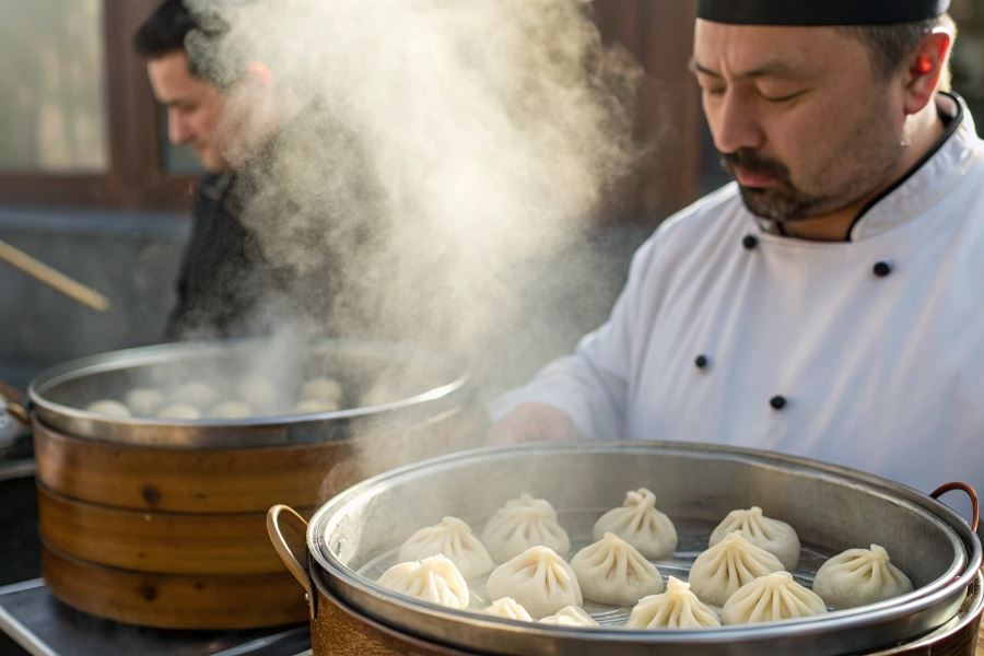 Wskazówka eksperta: Nigdy nie wrzucaj wszystkich chinkali naraz! Wkładaj je stopniowo, pozwalając wodzie utrzymać wrzenie. To kluczowy moment, który decyduje o jakości gotowego dania.