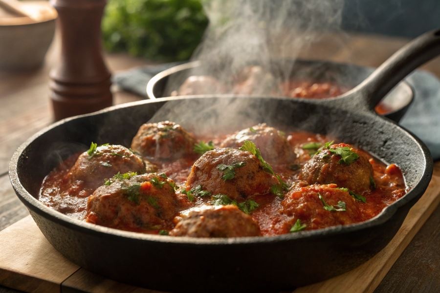 Właściwe podgrzewanie – umieść pulpety wraz z sosem na patelni, przykryj pokrywką i podgrzewaj przez 8-10 minut, od czasu do czasu delikatnie mieszając.