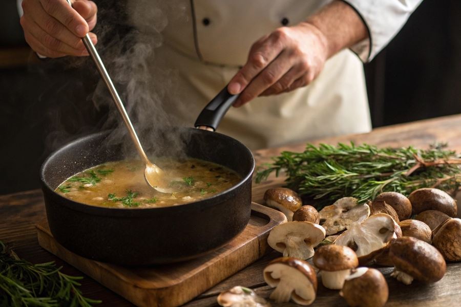 Proces gotowania zupy grzybowej z mrożonych grzybów