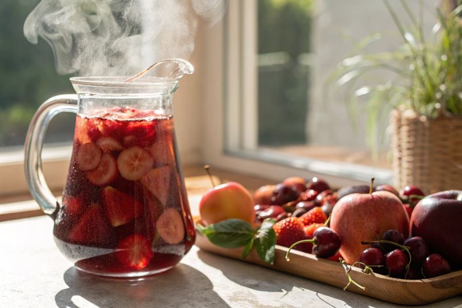Wybierając owoce, warto zwrócić uwagę na ich jakość. Truskawki powinny być dojrzałe, ale jędrne, jabłka najlepiej kwaśno-słodkie (np. odmiany Antonówka lub Szara Reneta), a wiśnie intensywne w smaku. Taka kompozycja zapewni kompotowi głębię smaku – słodycz truskawek, kwaskowatość jabłek i charakterystyczną cierpkość wiśni.