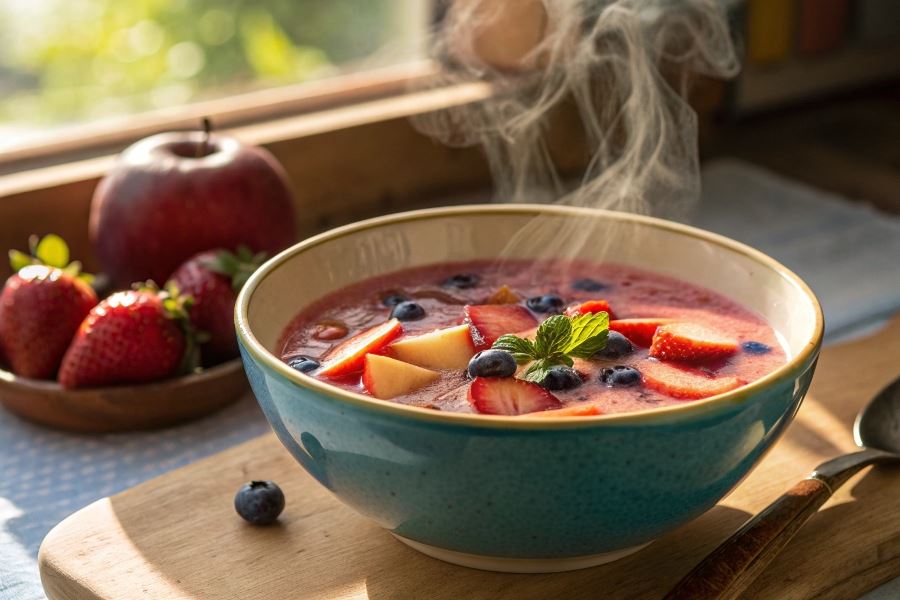 Zupa owocowa to tradycyjne danie polskiej kuchni, które od wieków gości na stołach szczególnie w okresie letnim i wczesnojesiennym. Kompot na ciepło z zagęszczeniem – tak często określają ją starsi Polacy. Wywodzi się z kuchni chłopskiej, gdzie stanowiła praktyczny sposób wykorzystania sezonowego nadmiaru owoców. W różnych regionach Polski występują lokalne odmiany, jak małopolska zupa jabłkowa z kluskami czy podlaska zupa jagodowa. Współcześnie zupa owocowa przeżywa renesans jako lekkie danie deserowe lub alternatywa dla ciężkich, mięsnych zup.
