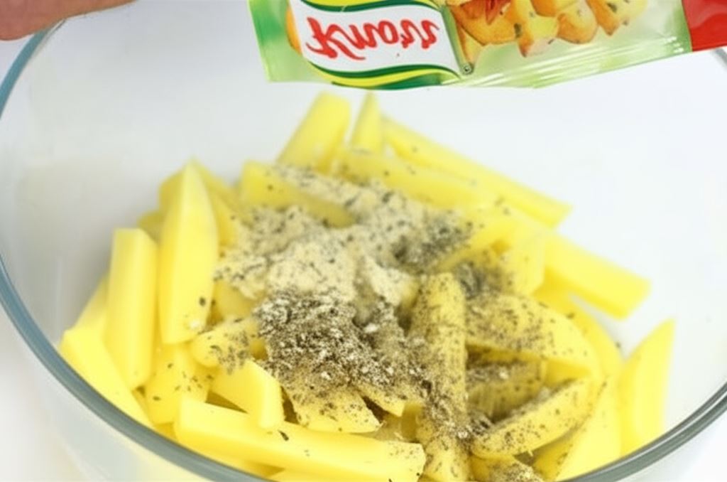 Domowe frytki z piekarnika to prawdziwa uczta dla podniebienia! Ziemniaki pokrojone w grube słupki, przyprawione aromatycznym majerankiem Knorr i upieczone do złocistego koloru, stanowią doskonałą alternatywę dla tradycyjnych frytek smażonych w głębokim tłuszczu. Sekret ich wyjątkowego smaku tkwi w odpowiednim doborze ziemniaków – najlepiej sprawdzą się odmiany gala lub irys, które podczas pieczenia zachowują chrupkość na zewnątrz i pozostają delikatnie miękkie w środku.